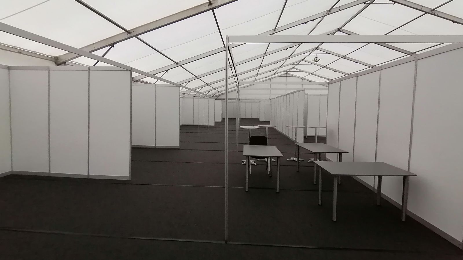 Aufbaubeginn die entsprechende Standfläche für den